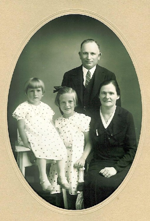 F:1 Alfred Jansson med familj Alfred Jansson med hustrun Anna och barnen Astrid och Edith (F:1). Foto från EG.