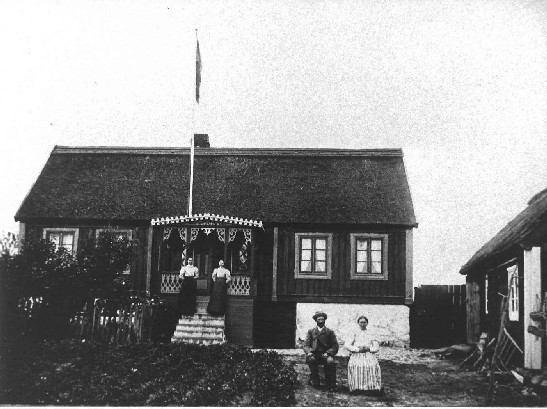 Augusta och Jenny tillsammans med föräldrarna Jöns ’Ila-Jössen’ Svensson och Pernilla utanför huset (F:11).