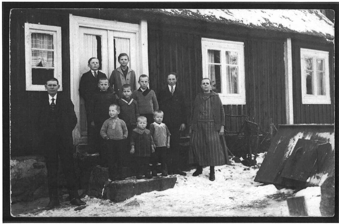 Gustav och Nanny Lysell med barnen utanför huset T:201.