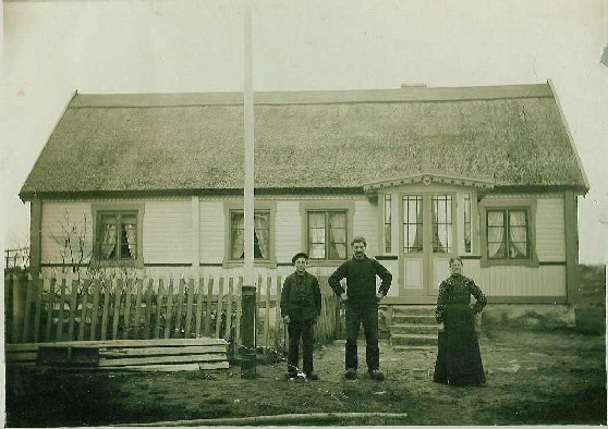 T:298 Huset Sonen Anton, Per (Andreasson) Andersson och hustrun Ingri utanför huset (T:298). Foto från EO.