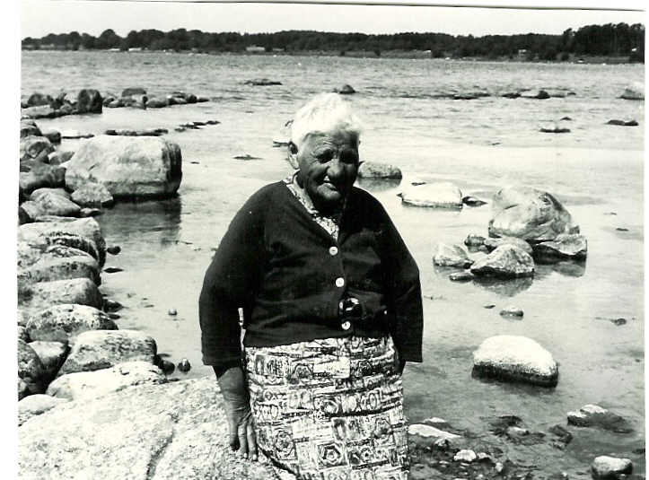 Tekla Månsson nere vid stranden på Västra Torsö (V:26).